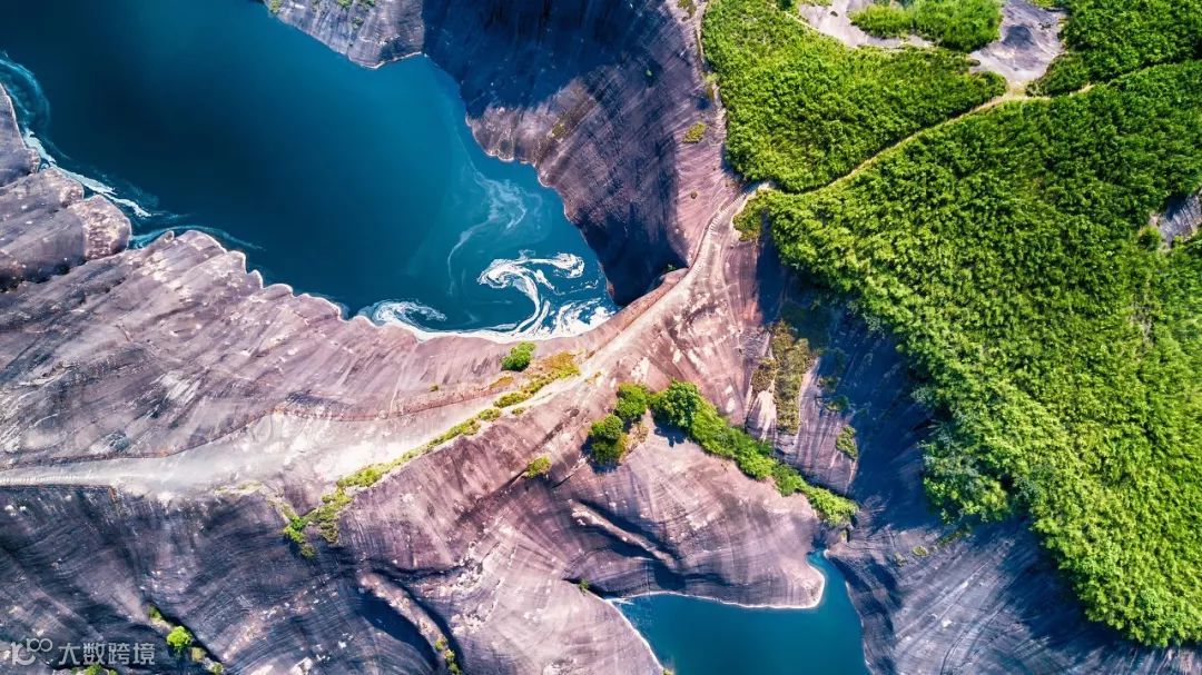 丹霞周边分布着漂亮的水洼,好像碧玉点缀其间,红岩绿水、险寨奇涧,生态自然,美得一塌糊涂。