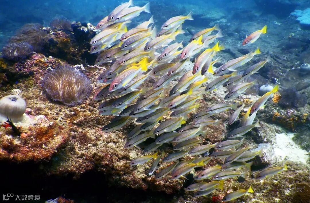 水域养分充足,让海底的沉船,甚至钻油台都长满各种绚丽的软珊瑚和海扇,常有大群燕鱼、杰克鱼在此穿梭巡回,颜色艳丽如同海底花园。