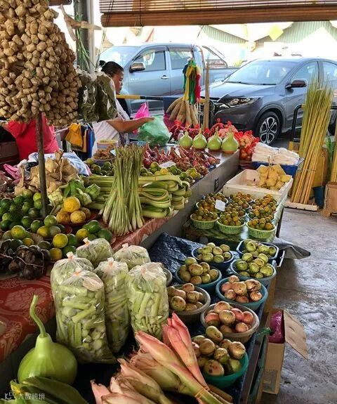 拜访一座城市,市场是一定要去的地方。美里的农贸市场里水果、蔬菜、本地土产摆得满满当当,让人目不暇接。