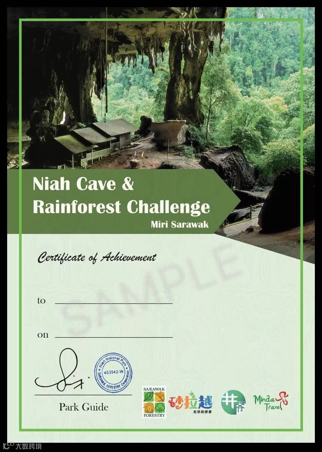 你还会获得由森林局和马来西亚旅游局颁发的尼亚热带雨林洞穴探险证书哦!