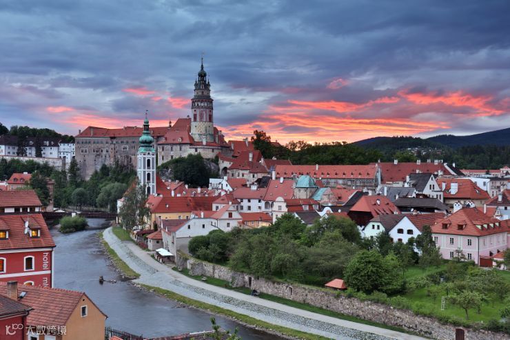 世界文化遗产克鲁姆洛夫被誉为“欧洲最美丽的中古小城”,满城红色的屋顶簇拥着尖尖的教堂。