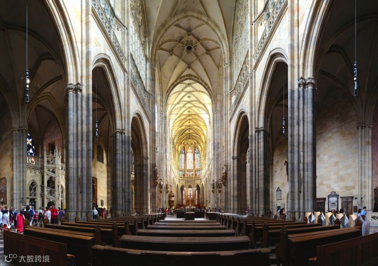 在历代国王加冕的圣维特大教堂内,用纯银打造的圣约翰墓、七彩斑斓的彩色玻璃、用金彩装饰的壁画令人眼花缭乱。