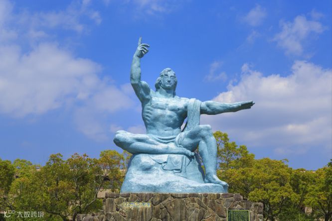 第二次世界大战结束后,长崎和平公园为了悼念亡灵和祈求和平而建造。和平公园中最醒目的,就是高达近十米的和平祈念像,雕像中的男子指天问地,据说代表着控诉和祈福。