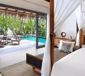 房型介绍:海滩泳池套房相比海滩别墅,宁静空间得到了进一步的加强。它有一个独立的起居室和32平方米的私人游泳池,卧室、客厅和浴室都面向礁湖的蔚蓝水域。