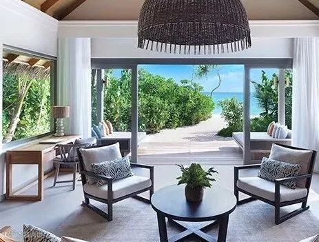 房型介绍:海滩平房坐落在摇曳的椰树和茂盛的树叶之间,是想要站在甲板上上、感受软白色的沙子在趾间溜走,然后跳入绿松石泻湖水域的夫妇的理想之选。