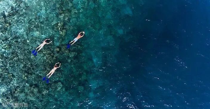 ★巨大的泻湖上有三个大小不一深度20多米的蓝洞,周围珊瑚礁十分富饶,鱼类十分丰富且紧邻水屋。