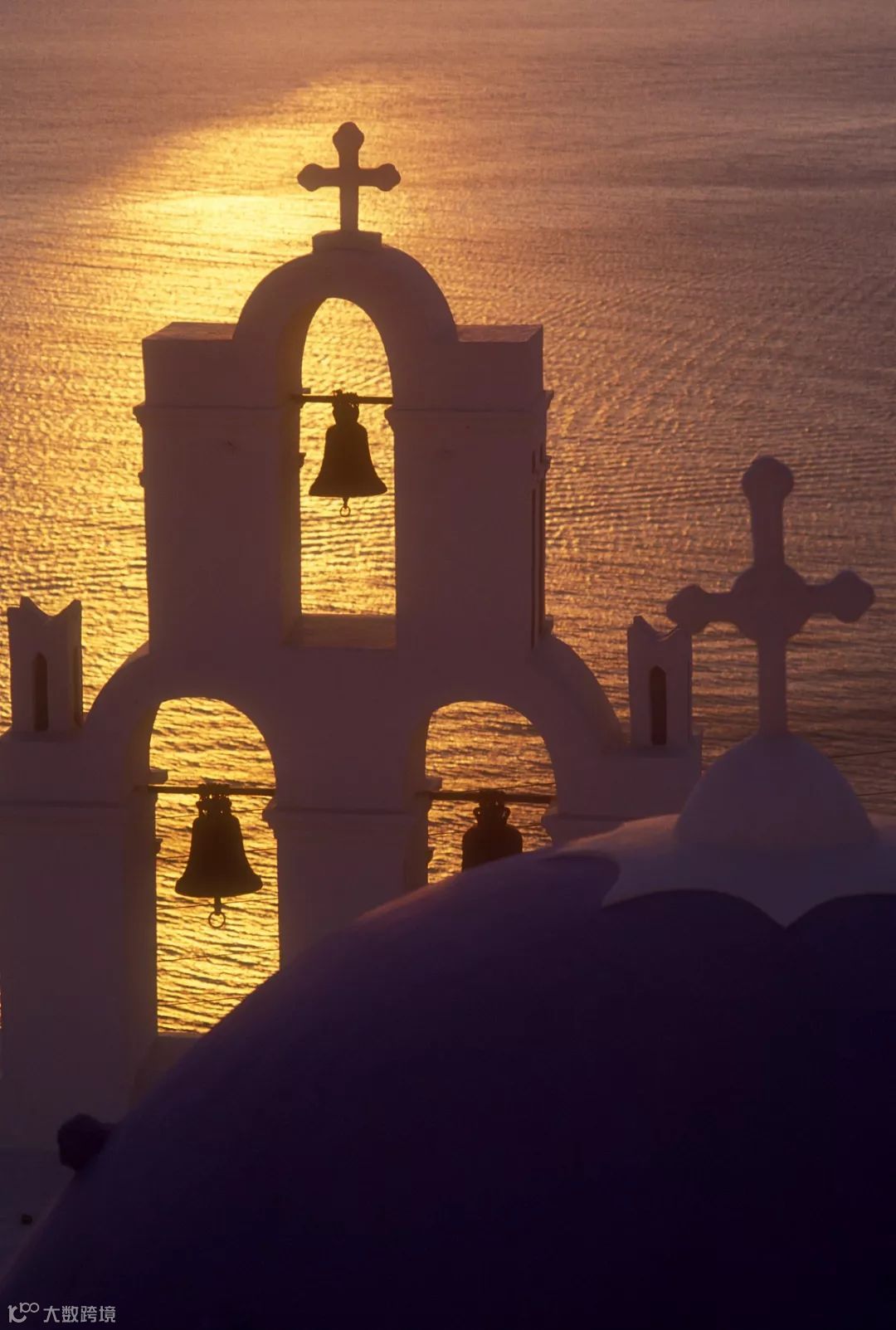 在圣托里尼岛,不仅可以捕捉爱琴海特有的白色小教堂配上蓝天碧海的绝佳画面,还能在西边的伊亚看到颇有名的“爱琴海日落”。
