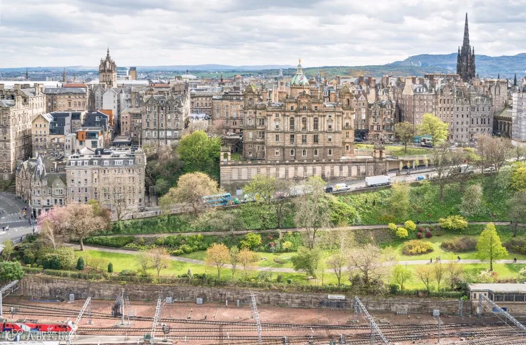 沿着王子街向东走到尽头,就来到郁郁葱葱的卡尔顿山。站在山顶西望,爱丁堡城堡巍然矗立,守护着宁静的小城,景色非常美丽。