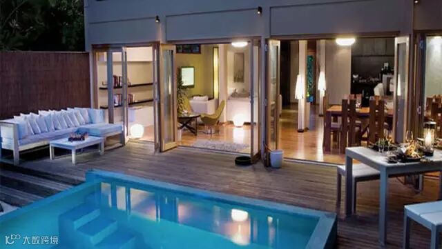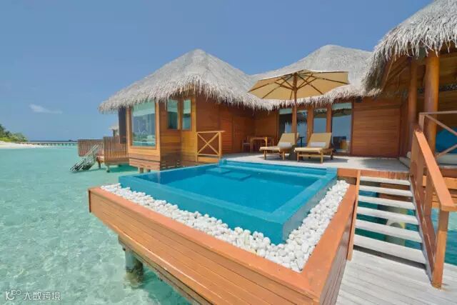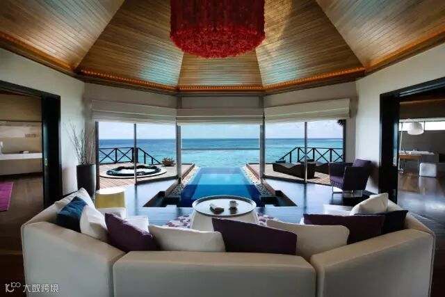 整个岛屿上最佳的日落观赏区域里坐落着两栋浴室隔绝的Ocean Pavilion,面对日落美景,有专用的木步道直通,内部陈设豪华高雅,入口处可看到专用的大泳池,平台分两层,上层是双大厅,下层是宽敞的餐厅,别墅离主岛100米远,奢侈豪华错层式的观景露台有餐厅和按摩浴缸,主卧室的浴室有足够容下两人的浴缸,24小时客房叫餐服务,用餐区域特别规划侍者出入线路,让住客在用餐时完全不受干扰, Ocean Pavilion拥有两间房间,最多可容纳4位成人及两位12岁一下儿童。