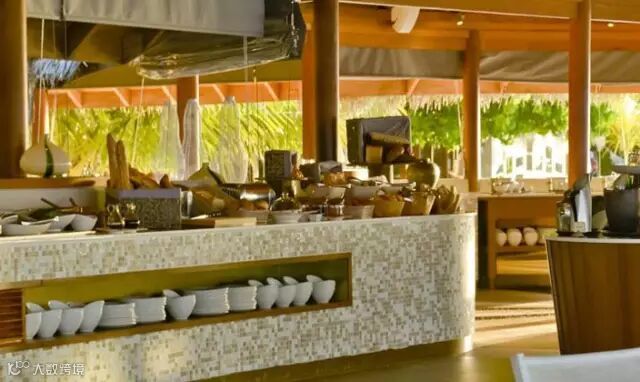 供应早餐、中餐及晚餐。开放式的空间,白沙的地板,散发出浓厚的马尔地夫传统Style,宾客可随心所欲选择户外或室内的Table,享受Free & Easy的用餐环境。