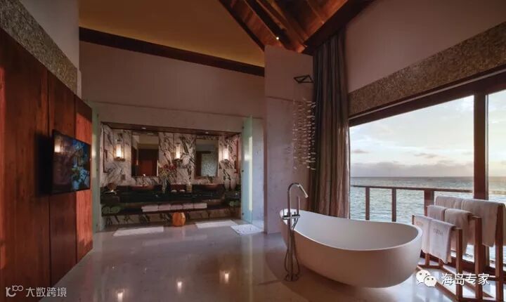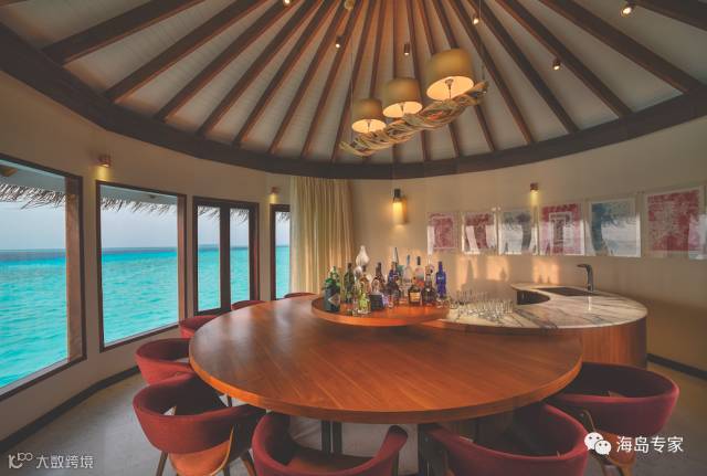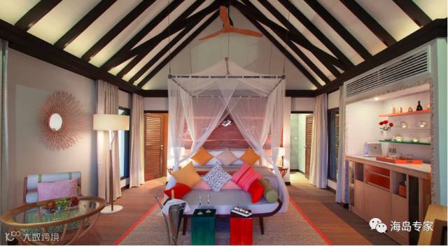 奥臻岛酒店总共将会建成6种房型,沙屋以“地球”命名,水屋以“季风”命名,将大自然和酒店巧妙的融为一体。