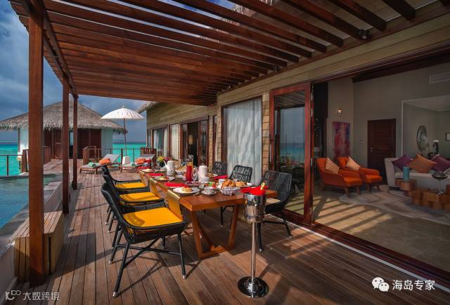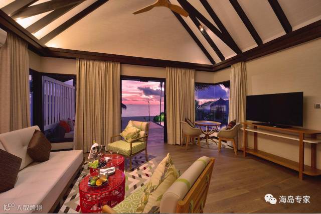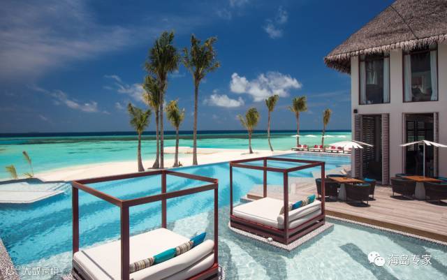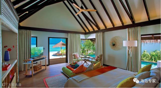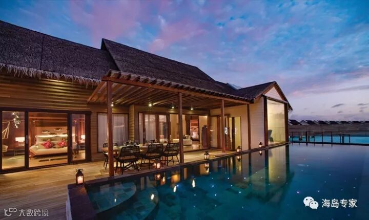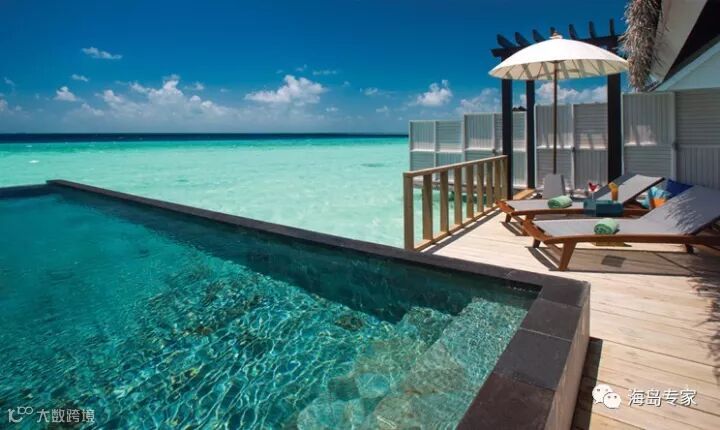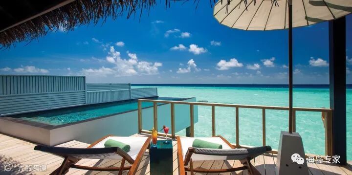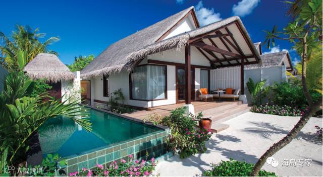 房型介绍:季风泳池水上别墅配备有8米长,20平方米超大无边泳池。24栋别墅均坐落在酒店的日落方向,游客们可以俯瞰最原始的环礁湖和马尔代夫的日落美景 .