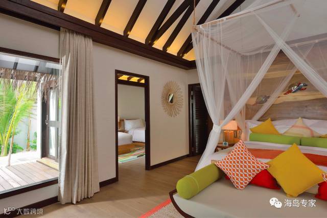 房型介绍:此别墅坐落在酒店北部的日出方向。为您提供极致完美的水上居住体验!每栋别墅的设计都采用了充满活力的鲜艳 色调和温馨舒适的内部装饰。每栋别墅的浴室内都配备椭圆形浴缸。季风泳池水上别墅配备有8米长,20平方米超大无边泳池。24栋别墅均坐落在酒店的日落方向,游客们可以俯瞰最原始的环礁湖和马尔代夫的日落美景 .