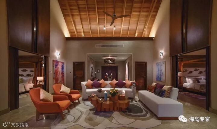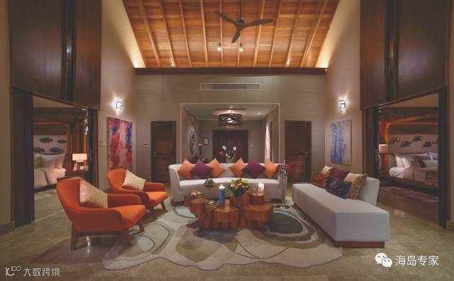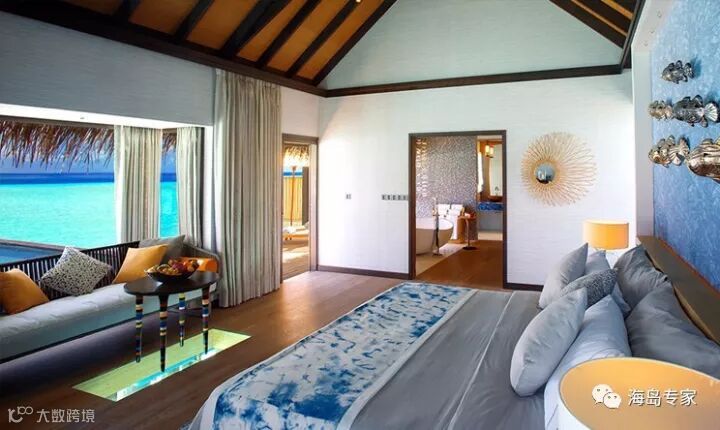 房型介绍:本套奢华套房坐落于奥臻岛最顶端,揽尽马尔代夫的无敌美景。套房共设有三间卧室,每间都设有独立浴室。套房同时配备了35平方米大的包含光纤氛围照明的超大泳池、私人健身房、设有独立出口的佣人房和一间露天用餐亭。引用定制奢华的理念,勘称最完美的水上套房!