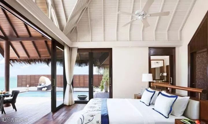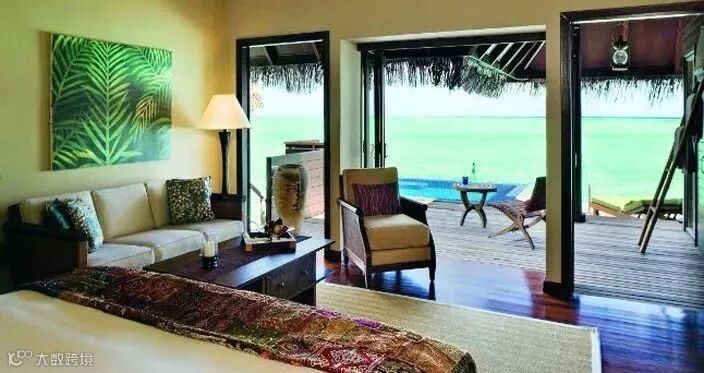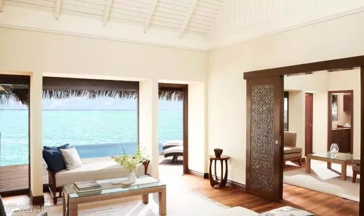 房型介绍:泳池建在水上提供宽敞、漂亮的内饰,这个高雅的别墅有一间客厅,一间卧室和玻璃浴室,可以欣赏印度洋全景,一个巨大的游泳池和一个私人阳台,“萨拉”餐厅,和一个美丽的装有粉末软沙的悬浮甲板。