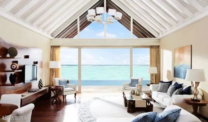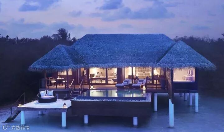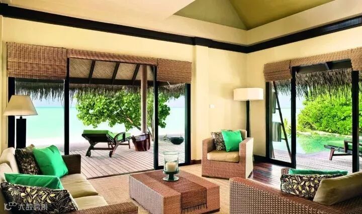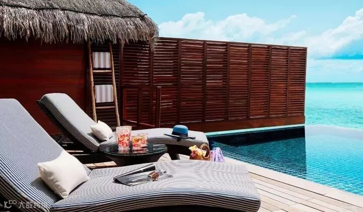 房型介绍:是建筑在环礁湖上的联体别墅。有单独的日光浴甲板,休闲椅,并有梯子直接下到海里。洗手间拥有双盥洗台。这些别墅建在高脚柱上,房屋下是礁湖海水。有木质的通道伸展到别墅的门口。