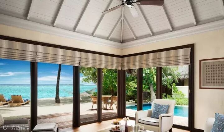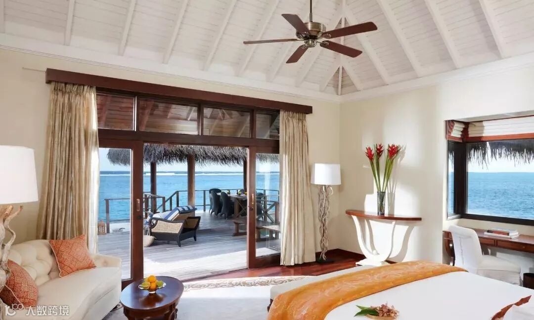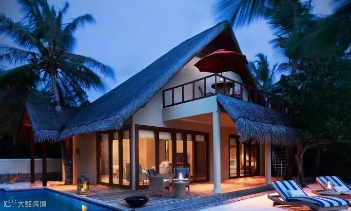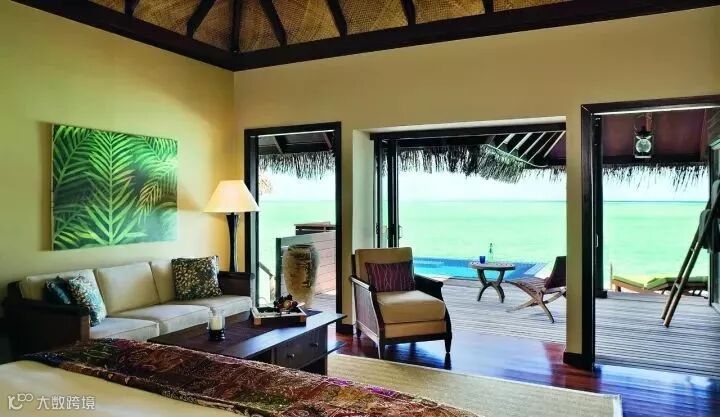 房型介绍:这是最豪华、最私密的房型。面积500平米,1个起居室,主卧有2个卫生间和1个阳台,1个客卧,1个玻璃浴室可以远眺印度洋,18,米的游泳池,1个日光浴甲板,2个凉亭可以在此用餐、玩耍。