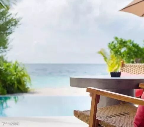 客人可以在泳池边品味着手中新奇的饮品放松,一边欣赏岛上的美景。