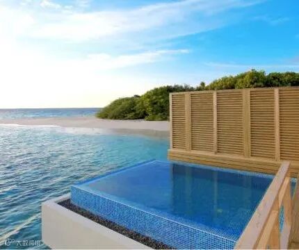 每一间礁湖别墅都配有一个私人游泳池、广阔的加班、围栏的壮丽景色,一个豪华的开放式浴室,几步就可进入泻湖,波光粼粼的珊瑚礁。