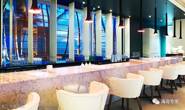 酒吧介绍:位于主泳池旁,The White Bar一整天 都可以提供清爽的鸡尾酒和清淡的食物。在户外,板凳席,躺椅椅,客人可以躺在棕榈树荫下沐浴阳光下,同时享受泻湖美景。在日落,酒吧会举行大型的鸡尾酒晚会。