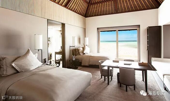 房型介绍:双卧室岛屿别墅和单卧室岛屿别墅设施相同,只是多了一个卧室。别墅全部配有优美的海景。布置精美的休息室以及室内和室外餐厅。别墅的后花园拥有一片丛林的棕榈树和异国情调的植物,每一个别墅区域都紧挨着私人的白色沙滩,可以在园里的餐馆享受家庭午餐。