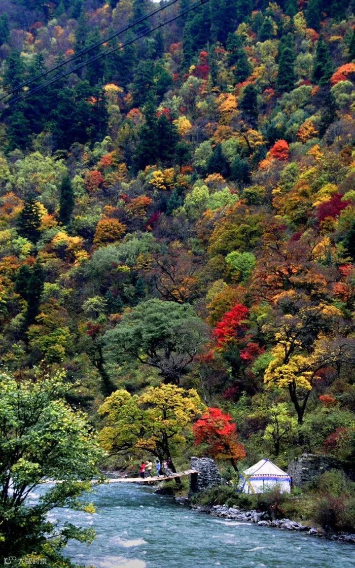在深秋时节,来到米亚罗,看那铺天盖地的红叶,红的向火,灿烂如霞,随着山风吹来,五彩斑斓的彩叶,相互映衬,很有视觉冲击力。