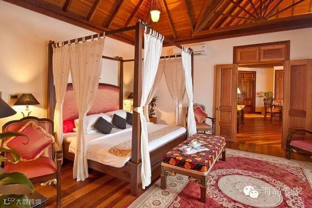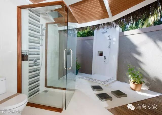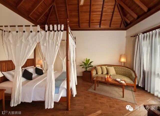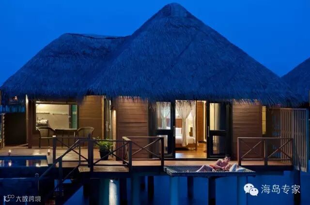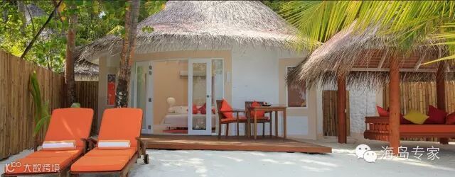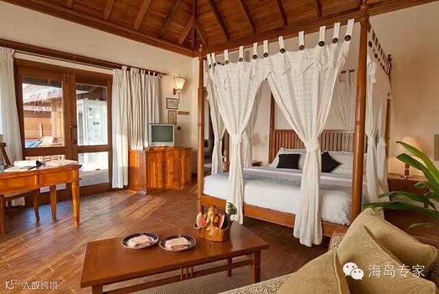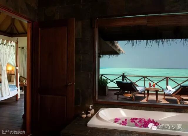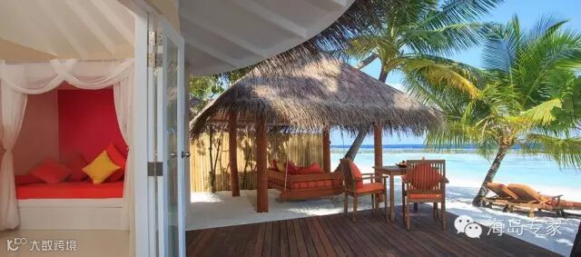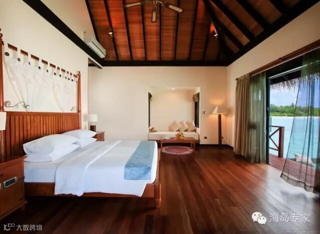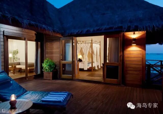 屋内的家俱由高级的麻栗木订制,打开落地窗,有私人的柚木甲板,睡在躺椅上,可俯视美丽的海滩及礁湖,并可从您私人的木梯直接跳下海水,享受这难得的阳光及海水。别墅附有甲板,可以俯视美丽的海滩和泻湖,私人水力按摩池,游泳平台提供了直接到泻湖的私人楼梯。