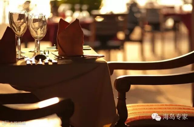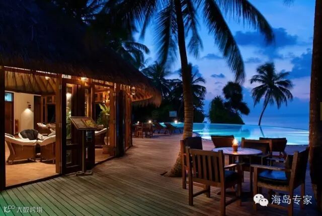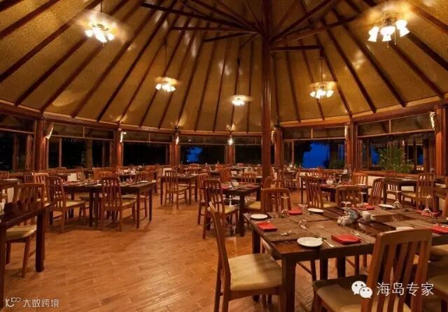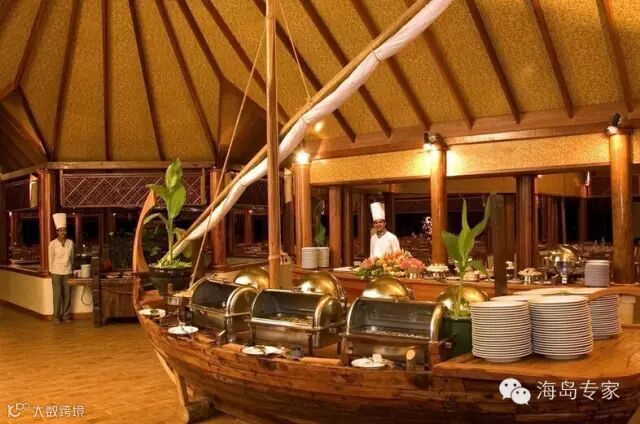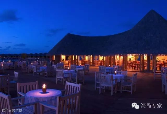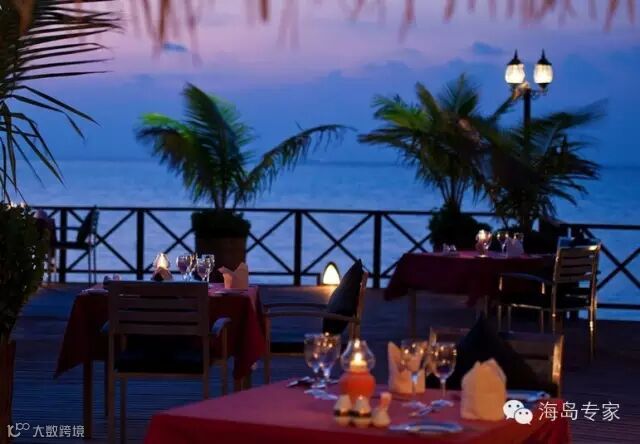 提供新鲜的海鲜,以及泰国和其他亚洲菜,日落餐厅一定能刺激你的味蕾。当你品味每吃一口时候都能在露天甲板上俯瞰泻湖和海洋。给水上别墅客人提供早餐服务。