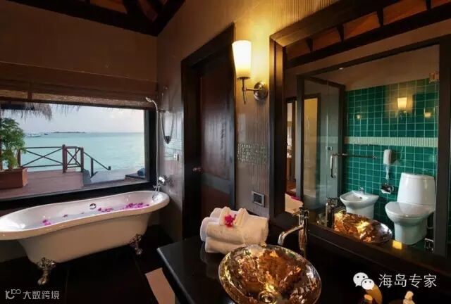 蜜月水上屋的特色是有三面的大落地窗,美丽的海景,尽入眼底。除了有水力按摩别墅的所有设备外,再加上一个起居室,以及蒸器浴间。另外,这些别墅还提供了独立客厅,三面玻璃提供了壮观的全景。