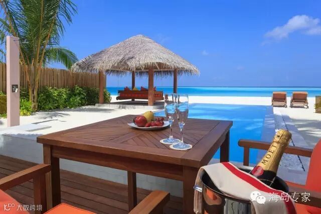 泳池别墅由阳台、阳光甲板和私人泳池组成每个别墅拥有360度海景,也可通过私人楼梯进入泻湖,去探知五彩斑斓的神秘海底世界。