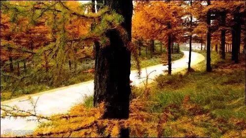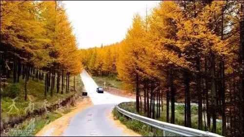 两侧进入眼帘的都是金色的华北落叶松
