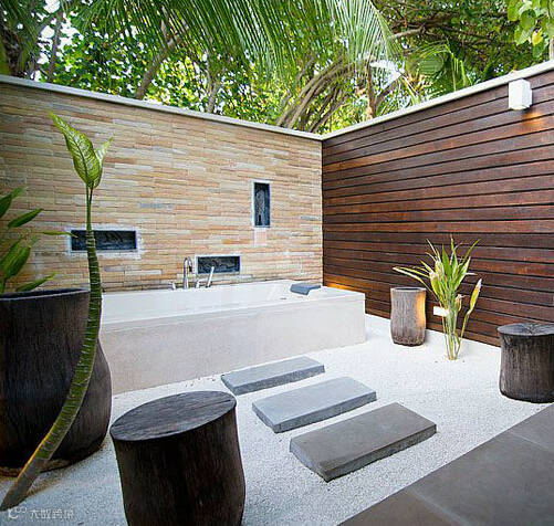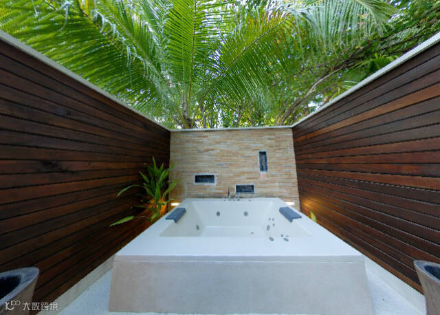 我们的泻湖别墅,拥有类似水上别墅的私人露台,以及直接入水的梯子。宽敞和安全的后花园结构,以及马尔代夫特色的露天按摩浴缸。