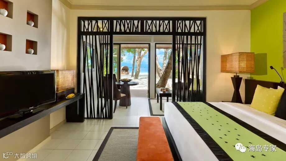 房型介绍:别墅就位于阳光灿烂的沙滩上,您可以一边欣赏美丽的印度洋,一边在您的专享秋千上尽情摇摆或静静地坐在走廊上。 在晴朗湛蓝的天空下,前往宁静的私人花园享受户外淋浴,在舒适的起居区和家人共度美好时光。