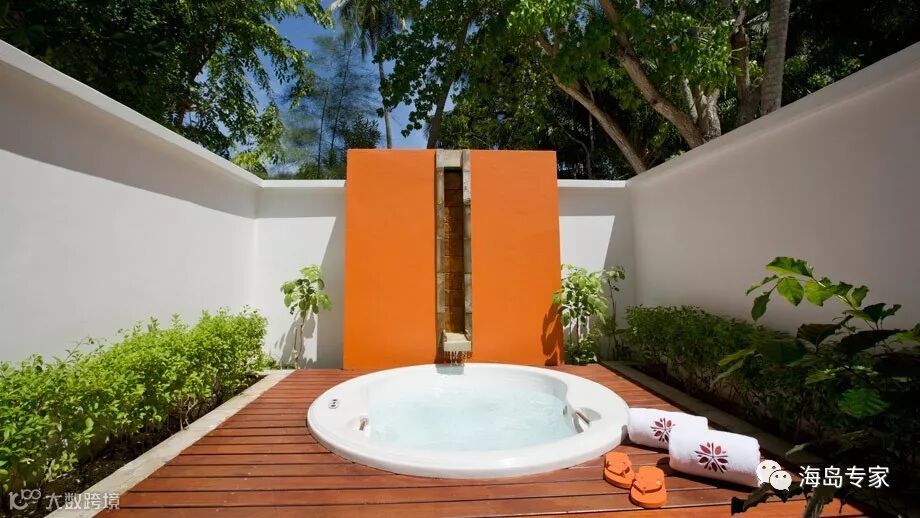房型介绍:海滨按摩池别墅拥有配备餐桌和椅子的阳台,您可以在户外秋千上阅读或冥想,一边慵懒地摇晃,户外淋浴和专属按摩池让您充分放松。 墙上挂着五颜六色的艺术品,色彩亮丽、质地柔软的装饰和黑色家具形成鲜明对比,宽敞的入口确保室内自然光线充足,打造出一片温润明亮的空间。