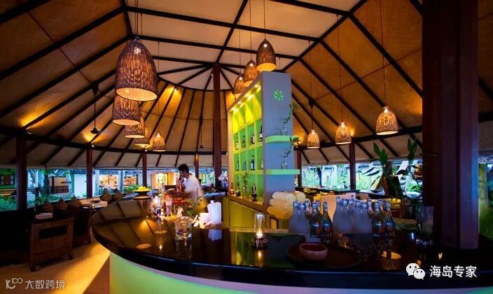 酒吧介绍:Velaavani 在迪维希语中意为“浅水湾”。 开放式的水滨酒吧提供鸡尾酒和点心,精心挑选的地理位置让您可以观赏泻湖风光和环岛珊瑚礁。 有时,您还能看到海龟和海豚在阳光下泛着闪烁波光的海水中嬉戏玩耍。