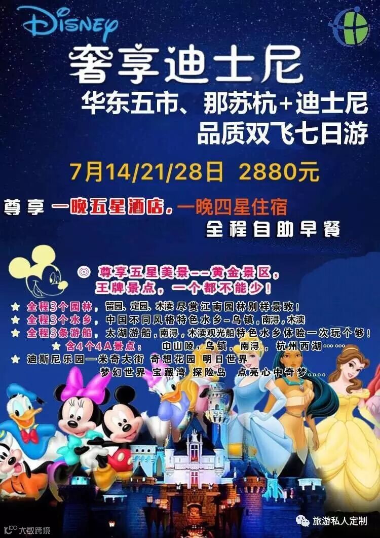 线路一: 【上海迪士尼乐园】为所有年龄层的中国游客呈现令人流连忘返的神奇体验。各地游客不仅可在乐园收获与众不同的体验,还能探索迪士尼小镇、两家度假区主题酒店以及星愿公园等精彩目的地,可在此游览全球最大的迪士尼城堡——奇幻童话城堡,探索别具一格又令人难忘的六大主题园区——米奇大街、奇想花园、梦幻世界、探险岛、宝藏湾和明日世界。 上海自由活动一天。(当天行程为二选一,报名时请确定好出行的路线) |