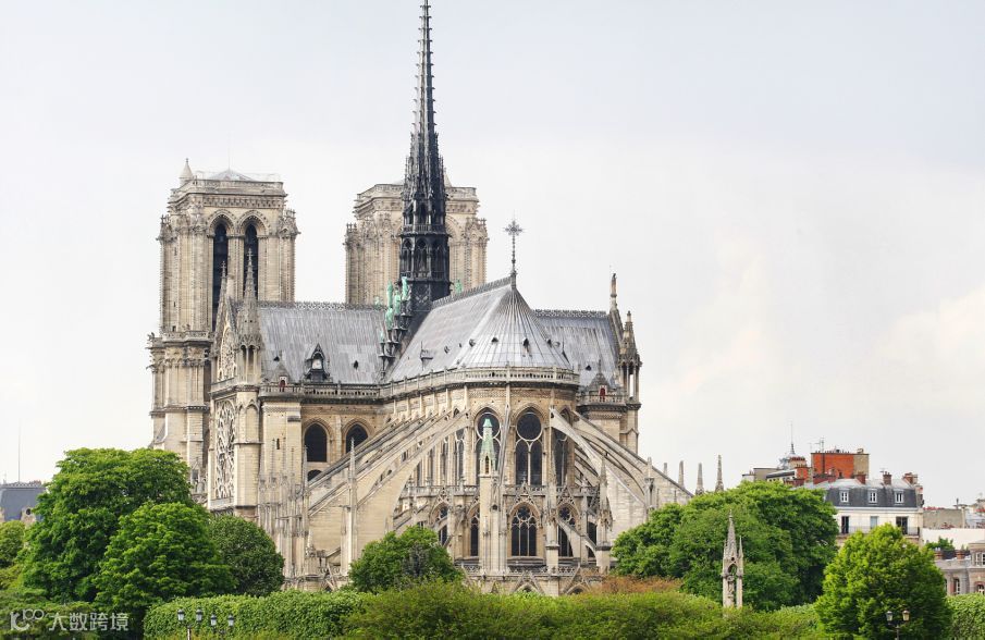 巴黎圣母院的上方竖着一座又尖又细的塔,这是哥特式教堂很明显的标志,人们希望通过高耸入云的塔尖来拉近与上帝的距离。