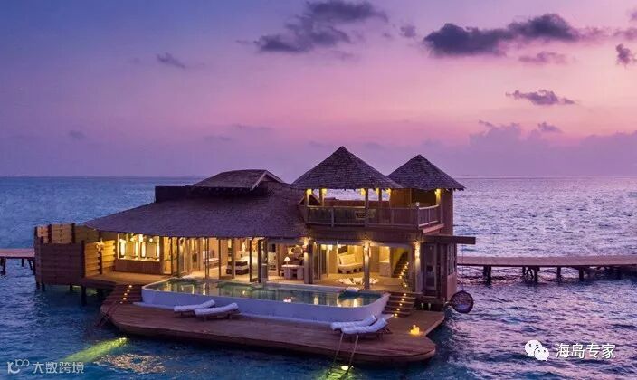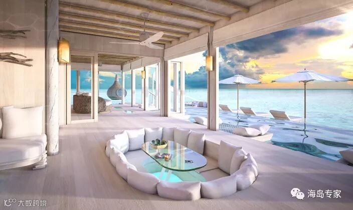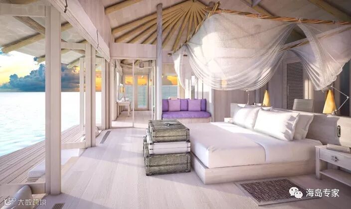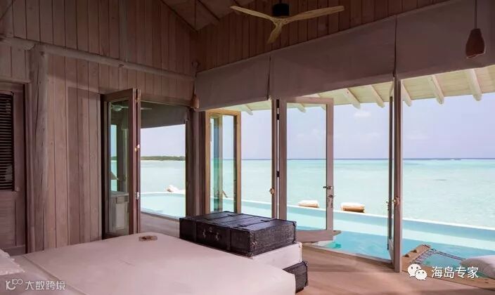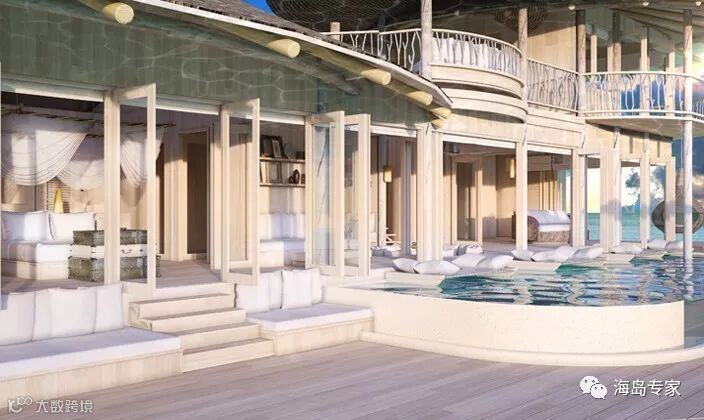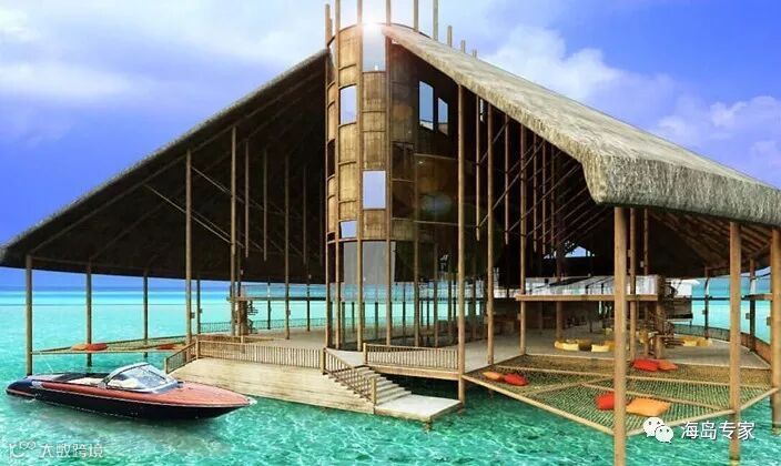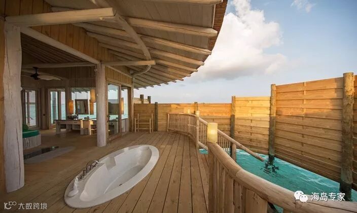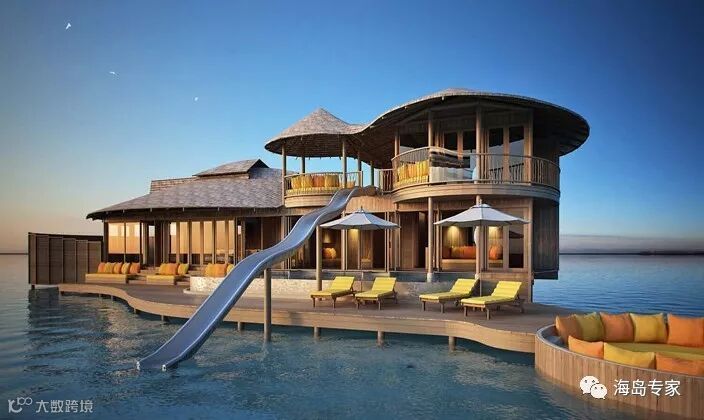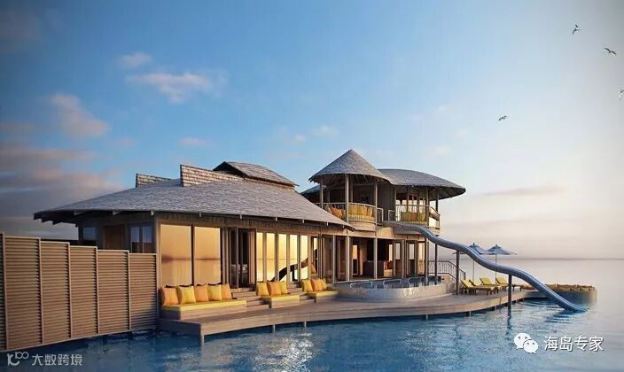 水上别墅建造了可以直接涌入印度洋的滑梯,让客人能肆无忌惮地与这一片的海域的生物分享大自然的恩赐。