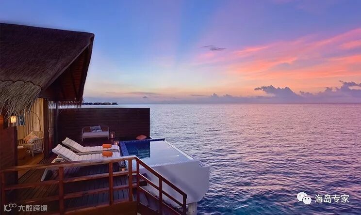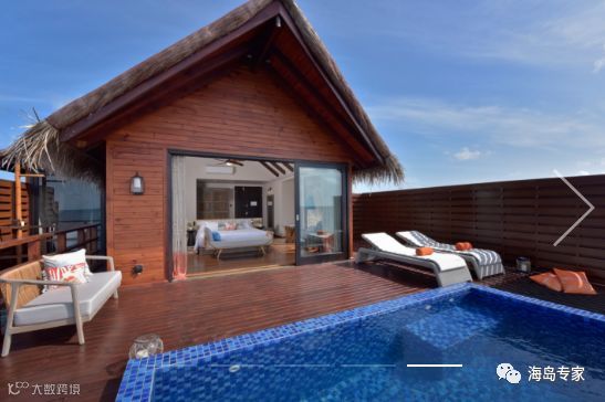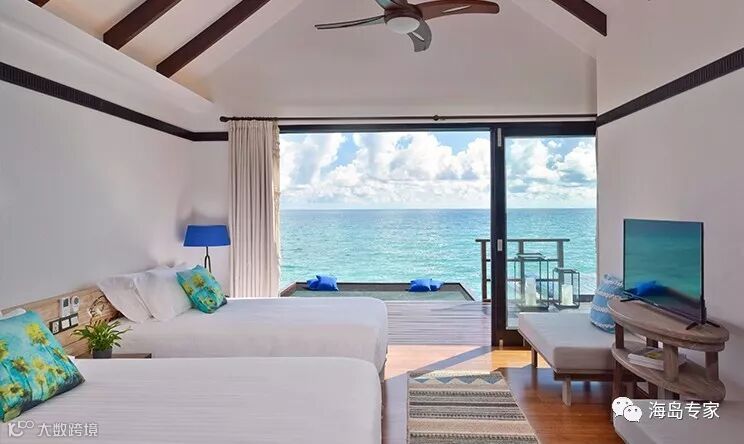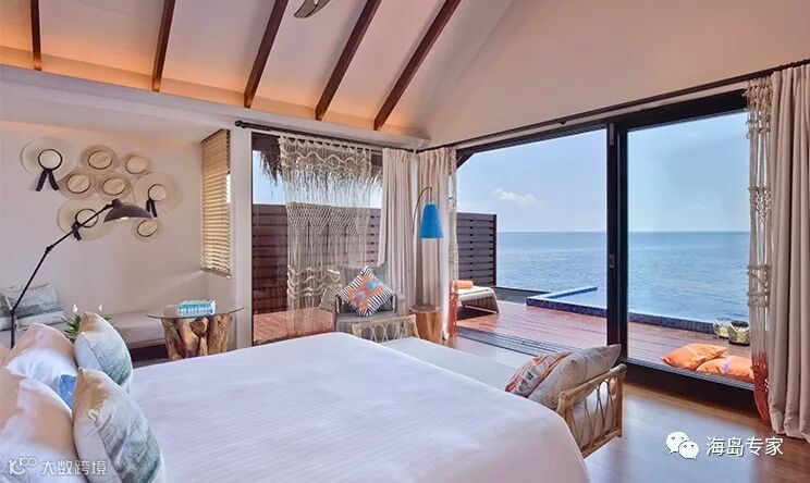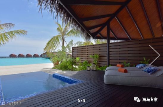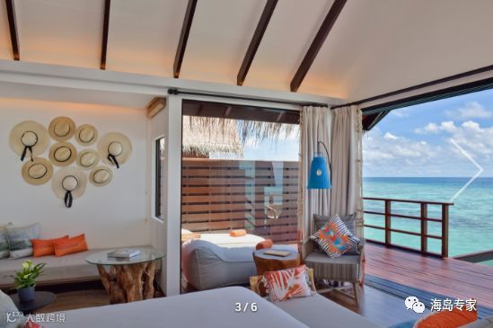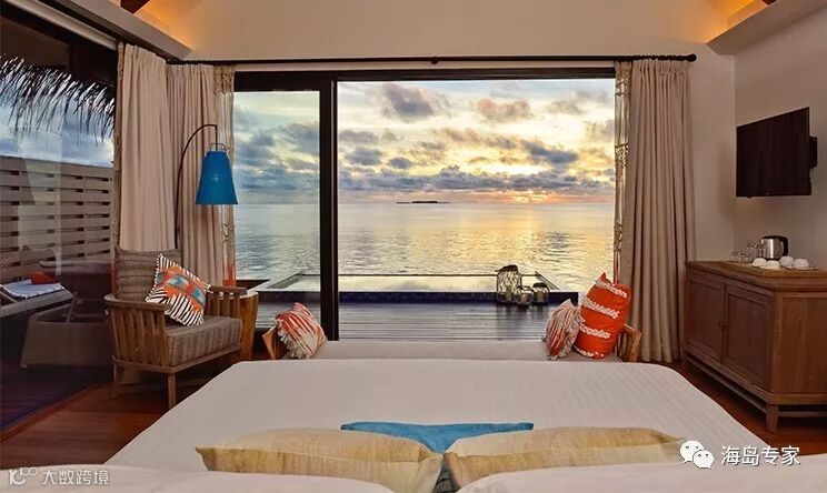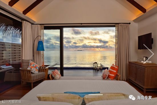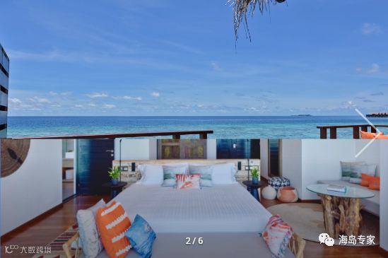房型介绍:别墅面临岛屿北部,建在平静清澈的泻湖之上,私人日落别墅是一个在岛屿浅滩周围游泳或浸泡的完美之所,可以在宽敞的私人阳台上放松或躺在马尔代夫吊床晒太阳。