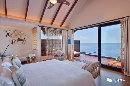 房型介绍:在礁湖泳池水上别墅享受舒适的空间和隐私,当代明亮的室内色调与编制文理的镜子完美演绎马尔代夫文化和美丽迷人景色。为您提供一片平静宁静的绿洲。