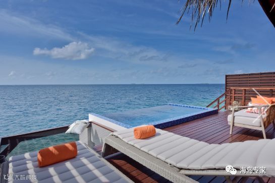 房型介绍:海洋水上别墅靠近岛屿设施,提供无线的天空和海洋景观,在私人的海洋泳池别墅醒来便可欣赏美丽的日出景观。别墅设有一个带太阳椅的私人露台,邀您步入水下世界和一个带室内室外淋浴的宽敞浴室。