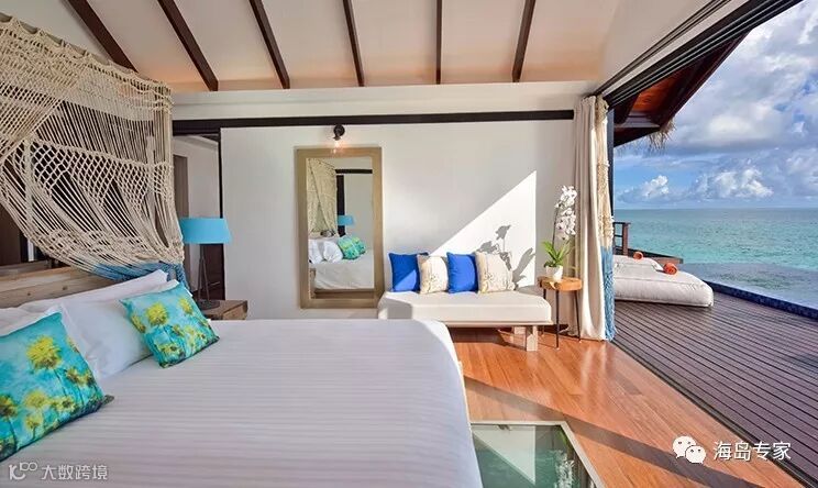 房型介绍:别墅面临岛屿北部,建在平静清澈的泻湖之上,私人日落别墅是一个在岛屿浅滩周围游泳或浸泡的完美之所,可以在宽敞的私人阳台上放松或躺在马尔代夫吊床晒太阳。