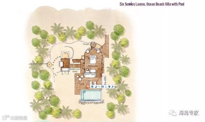 房型介绍:带泳池的海洋沙滩别墅被茂密的热带植被包围着有很好的私密性,从海洋沙滩别墅可以欣赏到精美的印度洋景观,游泳池距离海滨只有几米远,日光躺椅放置在泳池甲板和阴凉处,可以欣赏到蔚蓝的海洋和漂亮的晚霞。