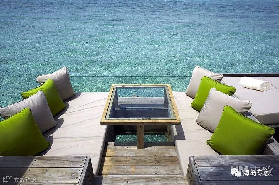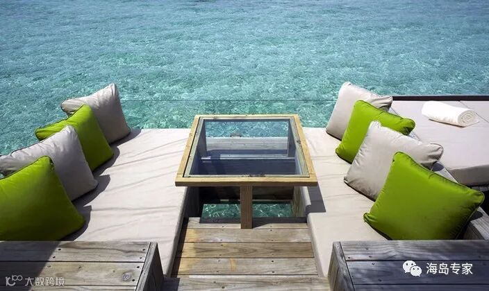 房型介绍:拉姆水上别墅内嵌式海洋观景全玻璃浴缸,户外休闲平台。带休闲椅、日光室和水上护网,全玻璃桌面。