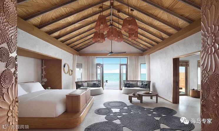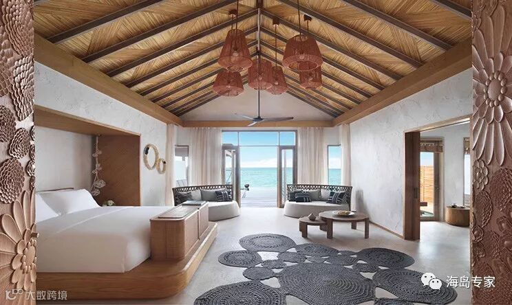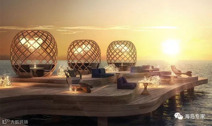 房型介绍:大日落水上别墅的基础设施并无差异,设有一个独立的浴室,独立的淋浴,双水槽,Nespresso咖啡机,酒柜、Bang & Olufsen音响系统、加州特大号床,14平方米的游泳池等。但360㎡的奢享空间更能体验一次海上奢华旅行,24小时服务的私人管家也会随时为客人解答任何问题。
