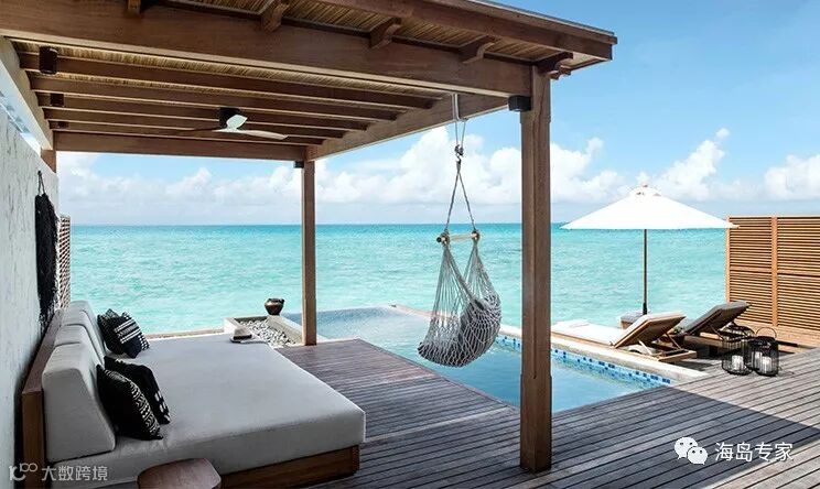 房型介绍:日出水上别墅偏向典雅的自然原木风格,巧妙地融合了马尔代夫自然之景。日出水上别墅在日出沙滩别墅房型的基础上又增设了一个超大型浴缸,外加私人大厅和19平米的泳池。夜晚的岛屿上空繁星点缀,听着潺潺流水,定能度过一个充满美好睡眠的夜晚。