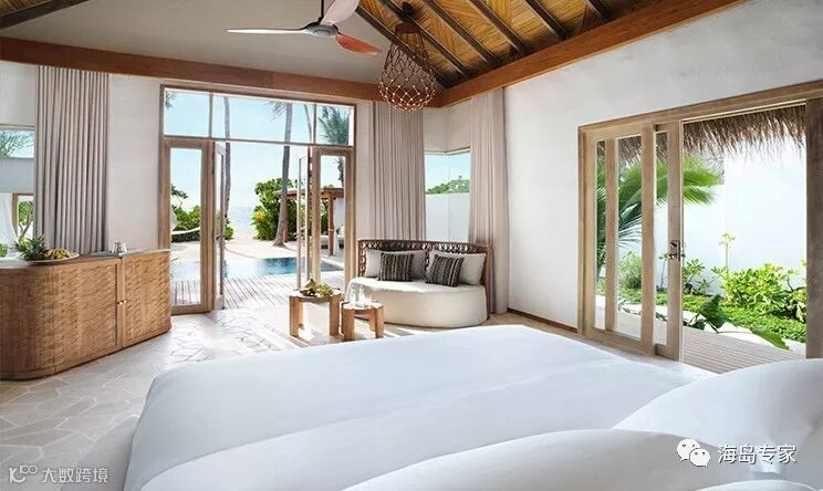 房型介绍:日出/日落豪华海滩别墅建在完美的白色沙滩边,设有独立的浴室,有独立的淋浴间,双水槽,Nespresso咖啡机,酒柜、Bang & Olufsen音响系统、加州特大号床和一个独立的起居室,可享受户外的私人浴室,浴缸和淋浴,一个25平方米的游泳池,一个放松和吃饭的大厅、如果你有什么需要可以打电话给你的私人管家,24小时全天候待命,也可以骑着自行车巡游度假村。