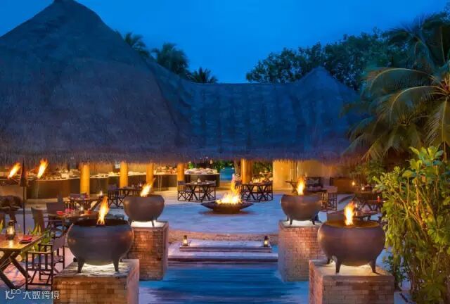 脚踩白色细沙,头顶繁星闪烁,桌旁棕榈摇曳,还有那轻柔拂面的印度洋海风——火焰露天餐厅拥有如梦似幻般的美妙用餐环境。在中央巨型篝火的映衬下,散落各处的小型火把犹如夜空繁星般璀璨生辉、美轮美奂。