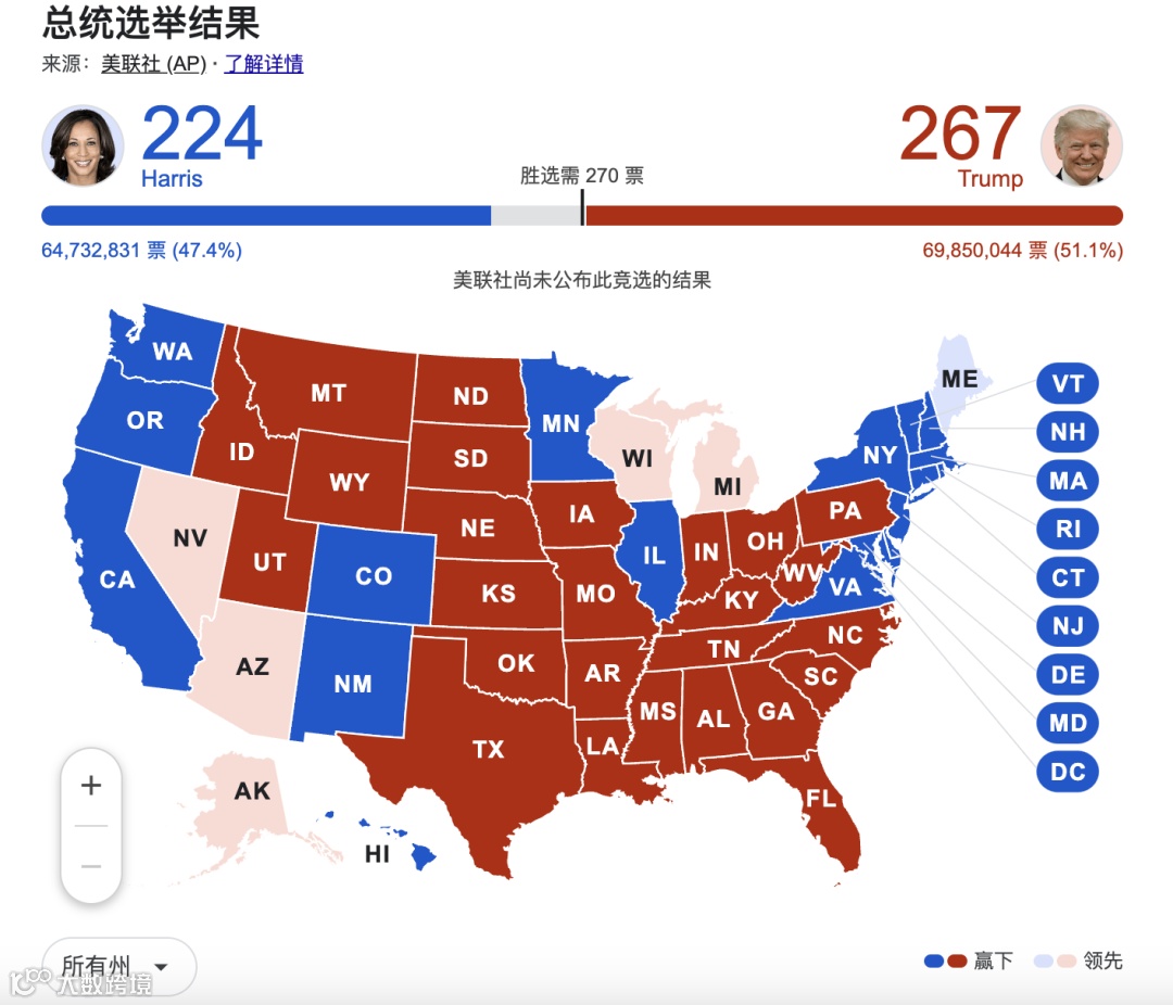 图源:https://www.leparisien.fr/international/etats-unis/direct-presidentielle-americaine-2024-donald-trump-ou-kamala-harris-suivez-les-resultats-de-lelection-06-11-2024-ZKBTMYXXRVEHNGBT66YQFPUG4U.php