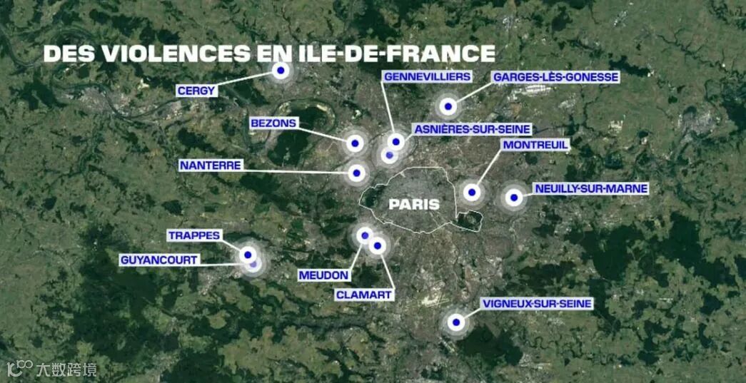 而在巴黎地区,发生暴乱的地方往往集中在大巴黎的一些主要城市,小巴黎除了全是商店的闹市区以及靠近市郊的某些地区之外,并未发生砸车放火的事件。